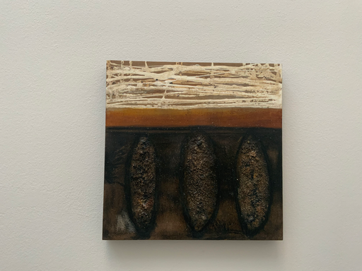 Mixed Media Bitumen, Acryl, Marmormehl, Papiere entstanden in einem online Workshop von Ines Hildur